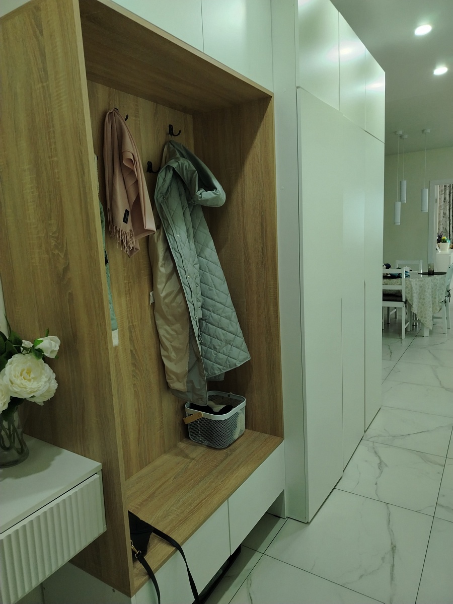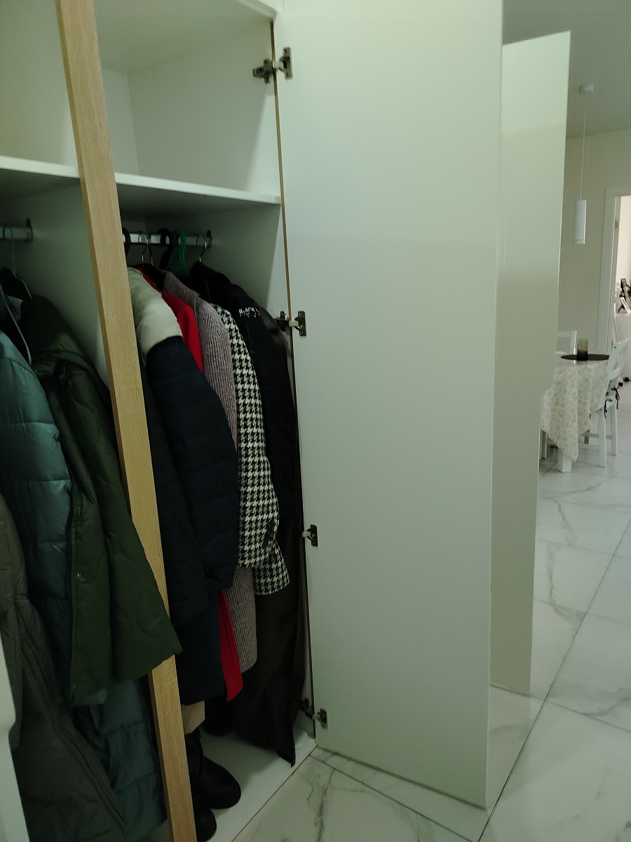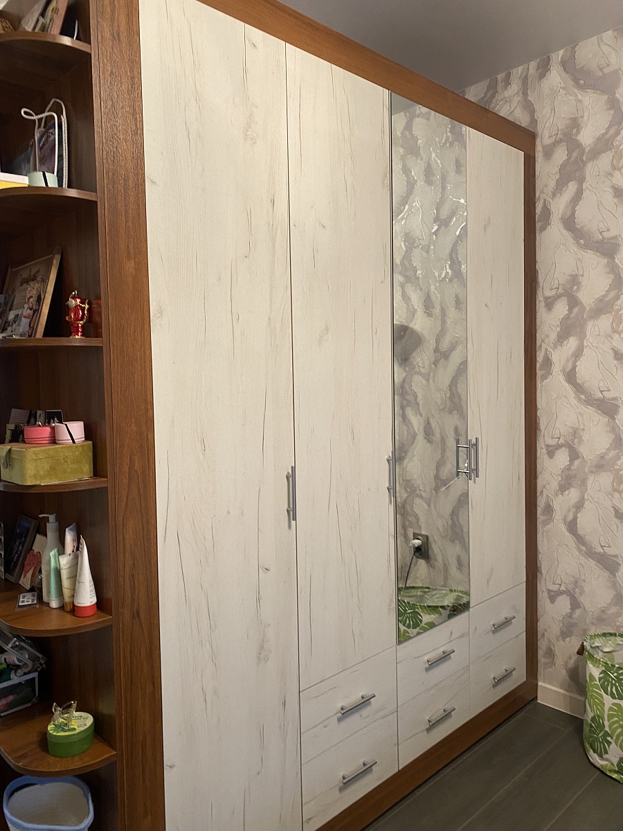 Отличный шкаф! Поместились вещи мои и мужа. Здорово, что здесь можно выбирать свои размеры и дополнительные полки/фурнитуру. Привезли через 5 дней с моими «желаемыми переделками»