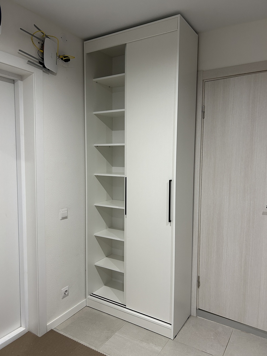 Искали минималистичный и бюджетный шкаф в прихожую, а данная модель подошла идеально. Заказала по своим габаритам и немного дополнила наполнение. Приятно удивила скорость изготовления. Практически через 4 дня с момента заказа сообщили о готовности шкафа. Очень оперативно 👍🏻 супер