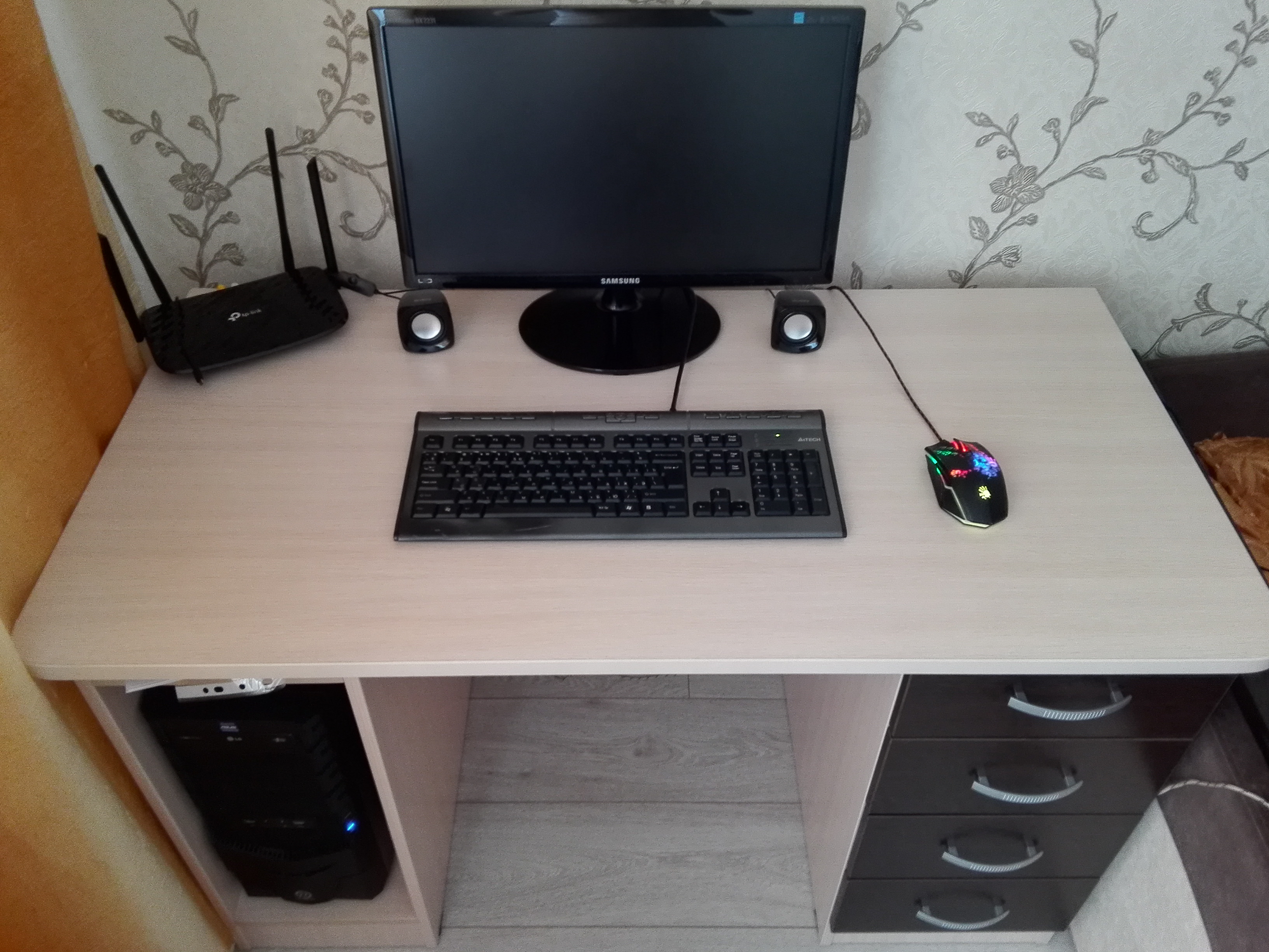 Хороший стол за такие деньги. Есть и отдельное место для системного блока (а он у нас большой), и ящики. Ничего не отвалилось и не отклеилось, хотя и пользуемся пока 3 месяца. Устойчивость хорошая, тактильно приятный. Особый плюс этого интернет-магазина - большие возможности по "настройке" стола. Собрали сами, хотя и пришлось повозиться. Комплектующих хватило. Правда изначально привезли не совсем то, что надо, но быстро и без проблем исправились. Привет отделу сервиса и спасибо за помощь! Вообщем выбором довольны.